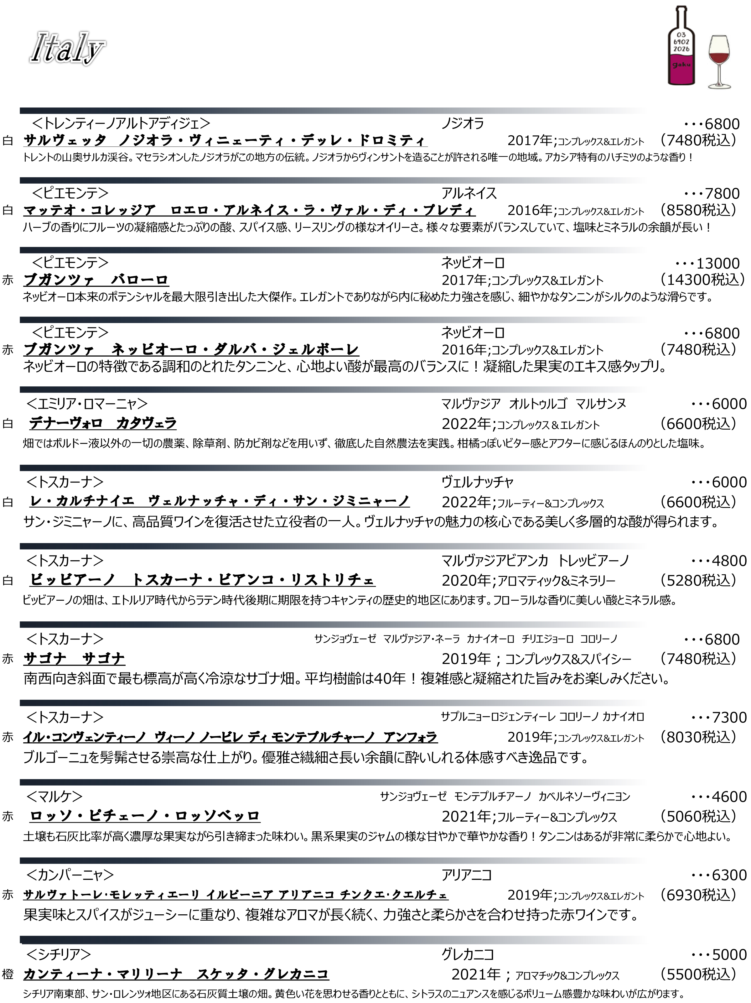 Menu メニュー